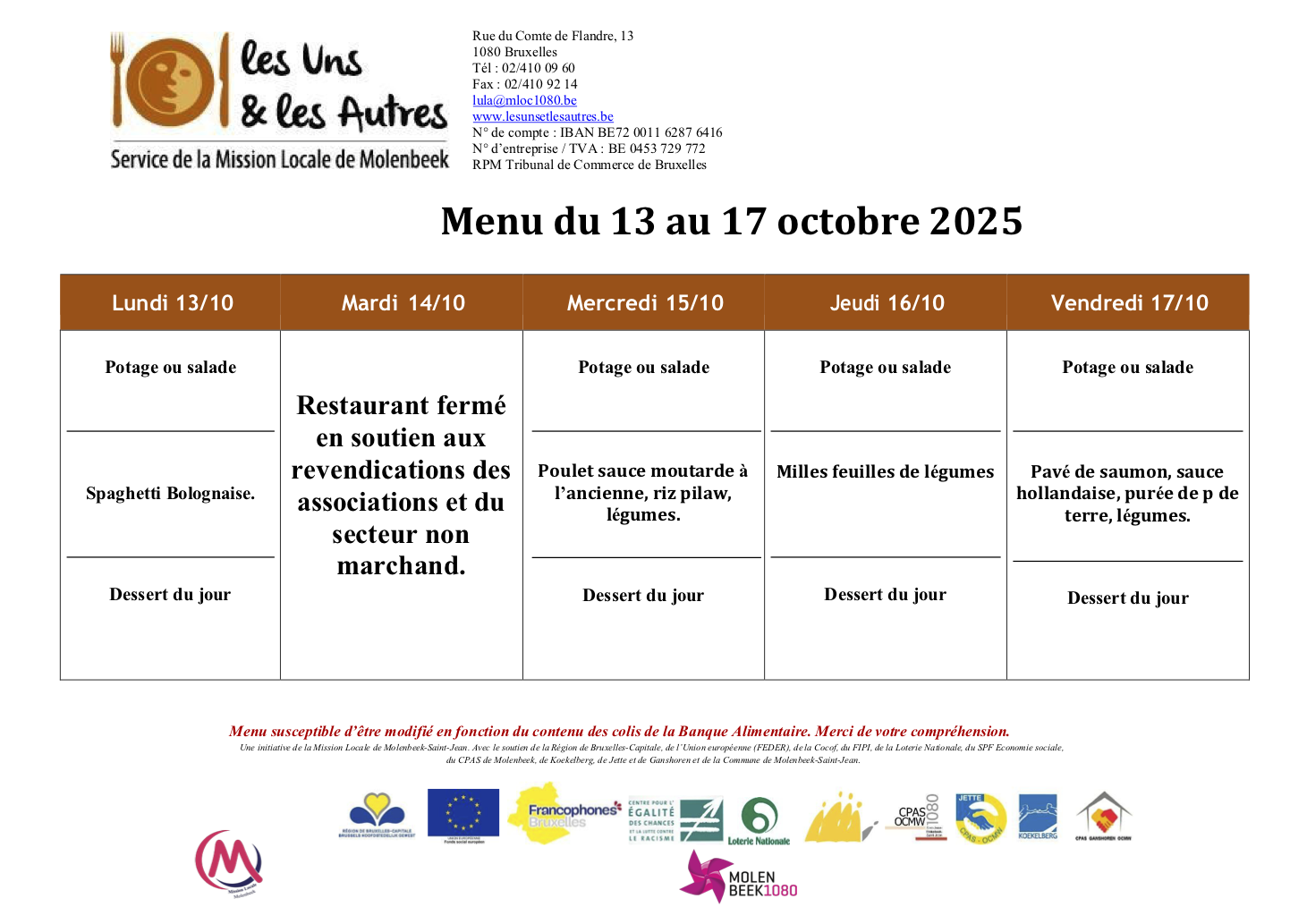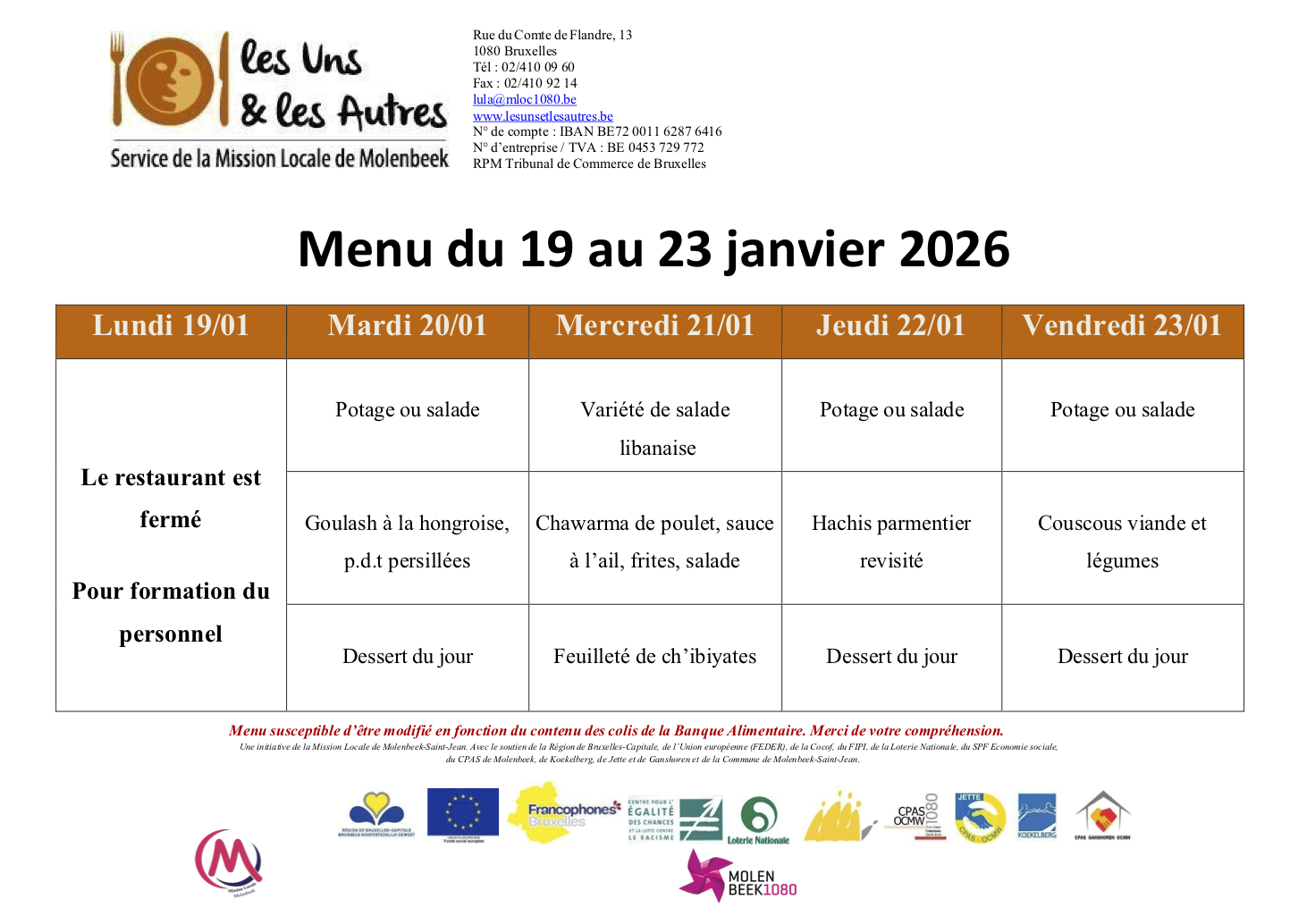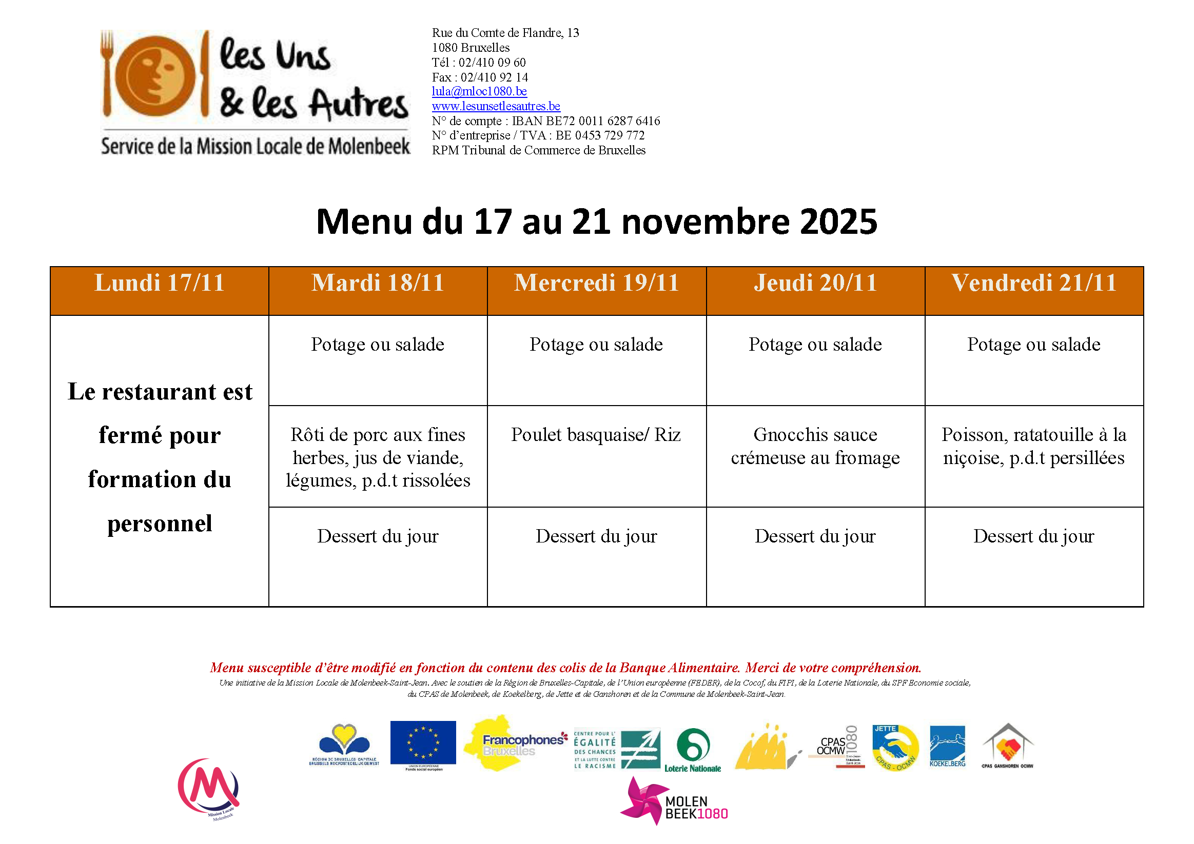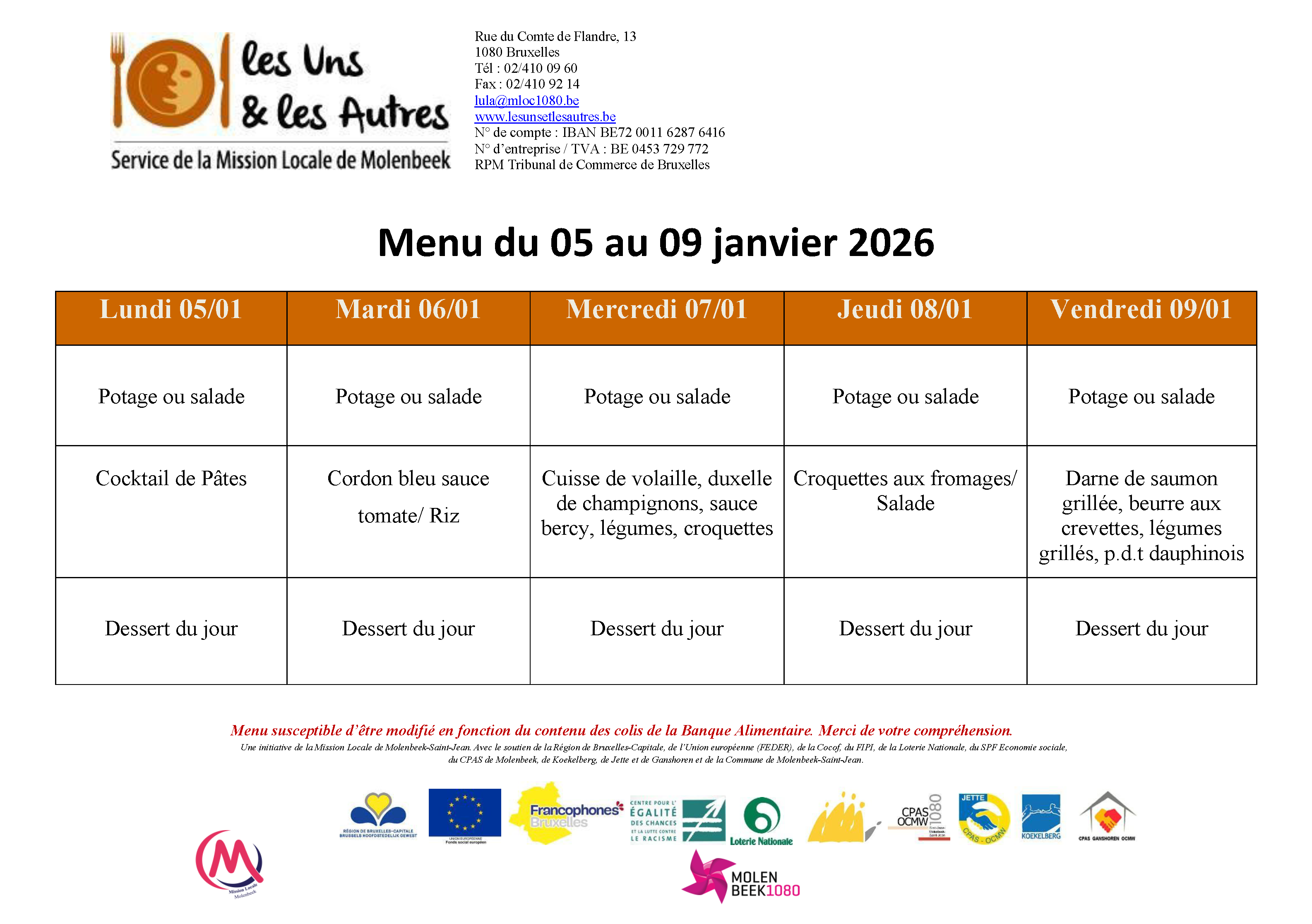 Les clients sociaux inscrits, qui sont malades, peuvent commander un menu à emporter à tarif social, sur base d’un certificat médical actualisé.